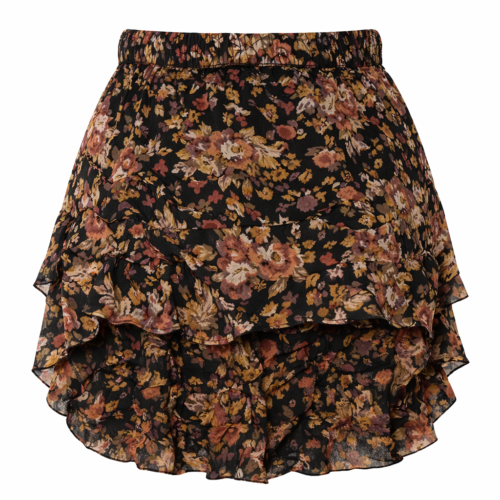 Esta falda corta floral para mujer es una prenda fresca, ligera y muy femenina, perfecta para el clima colombiano. Su estampado floral y diseño con volantes aportan movimiento y un estilo romántico ideal para el día a día.