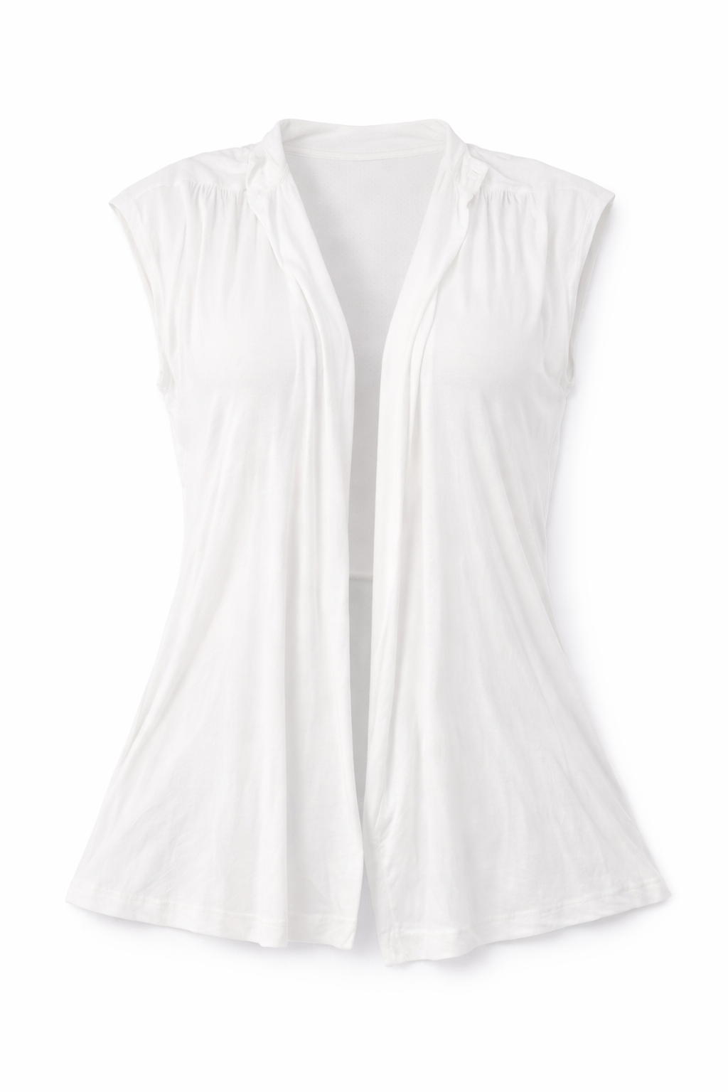 La blusa femenina sin mangas blanca tipo saquillo es una prenda esencial para tu clóset. Su diseño fluido y ligero brinda comodidad y frescura durante todo el día, ideal para climas cálidos y actividades casuales.